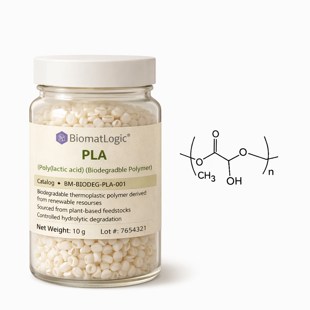The polymer degrades through hydrolysis into lactic acid, a naturally occurring metabolite, enabling safe and predictable breakdown in biological environments. PLA properties such as crystallinity, molecular weight, and degradation rate can be tuned to match specific application requirements. It is compatible with various fabrication techniques including extrusion, molding, and scaffold formation.